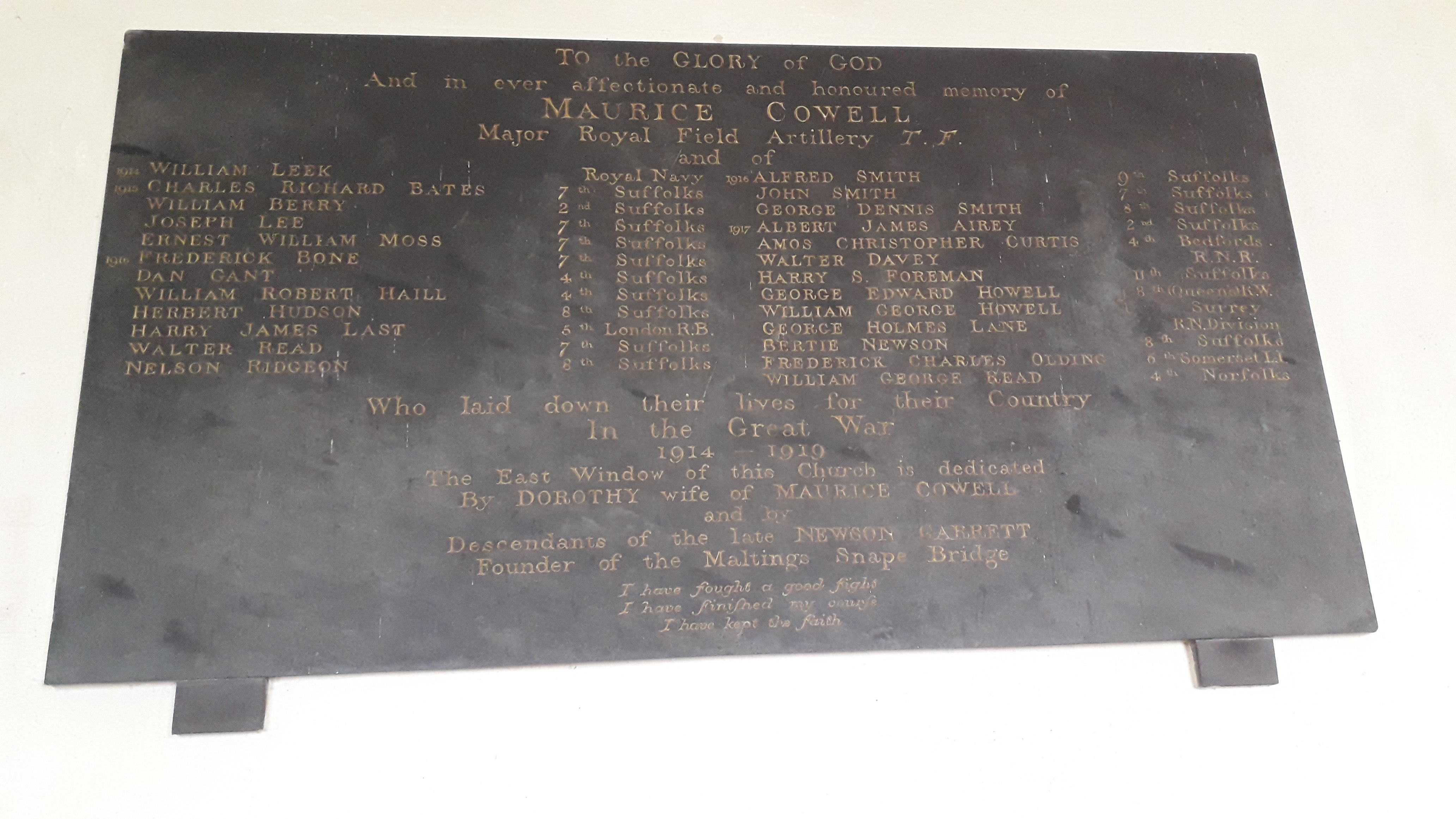 Beside the War Memorial is a "Roll of Honour [for the] Men who served in the Great War from the parish of Snape & Snape Bridge". |