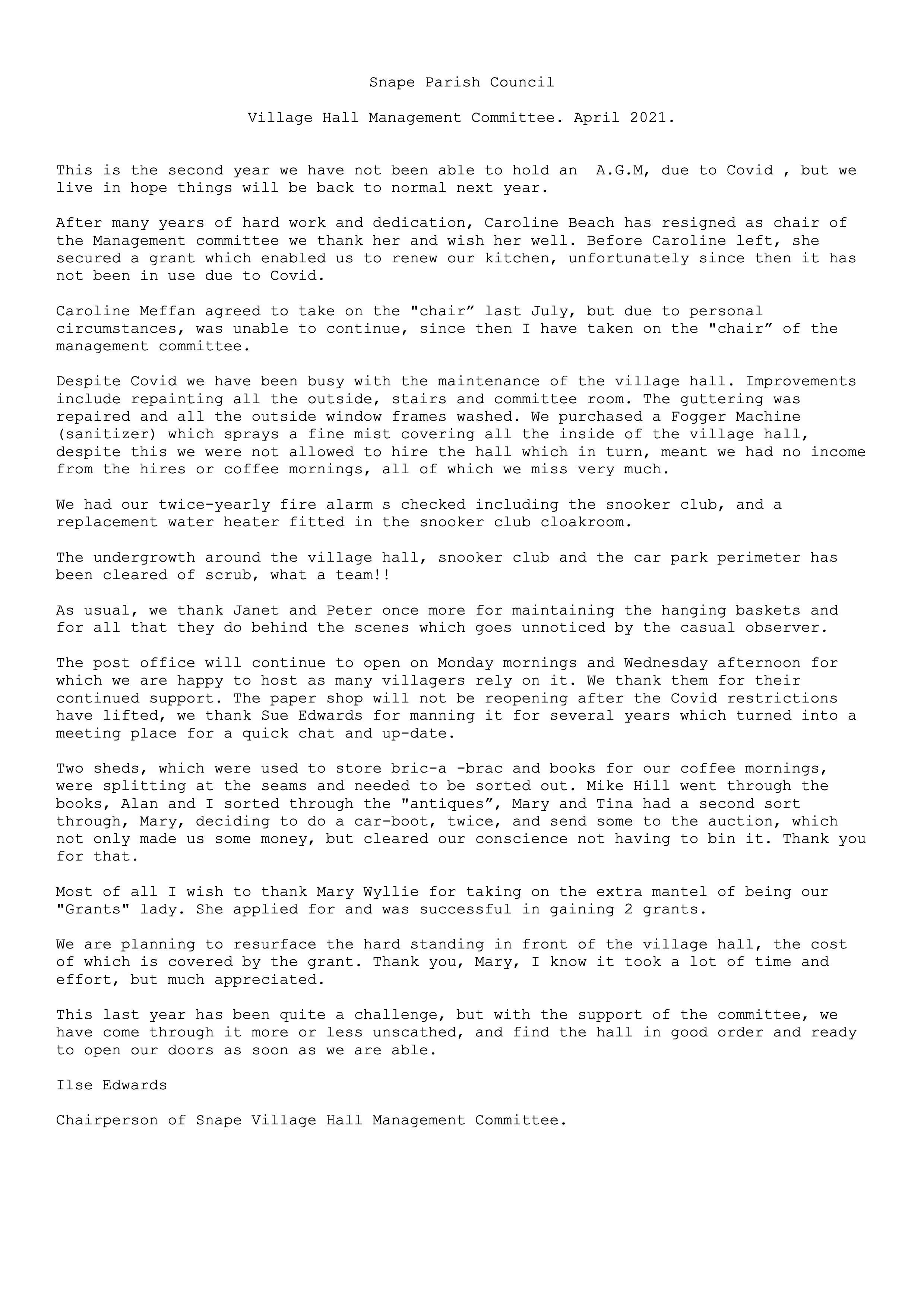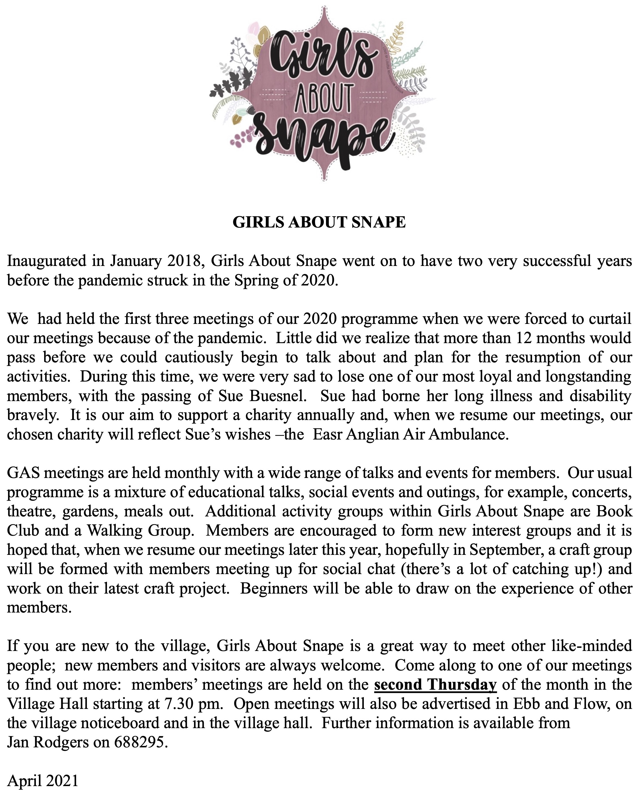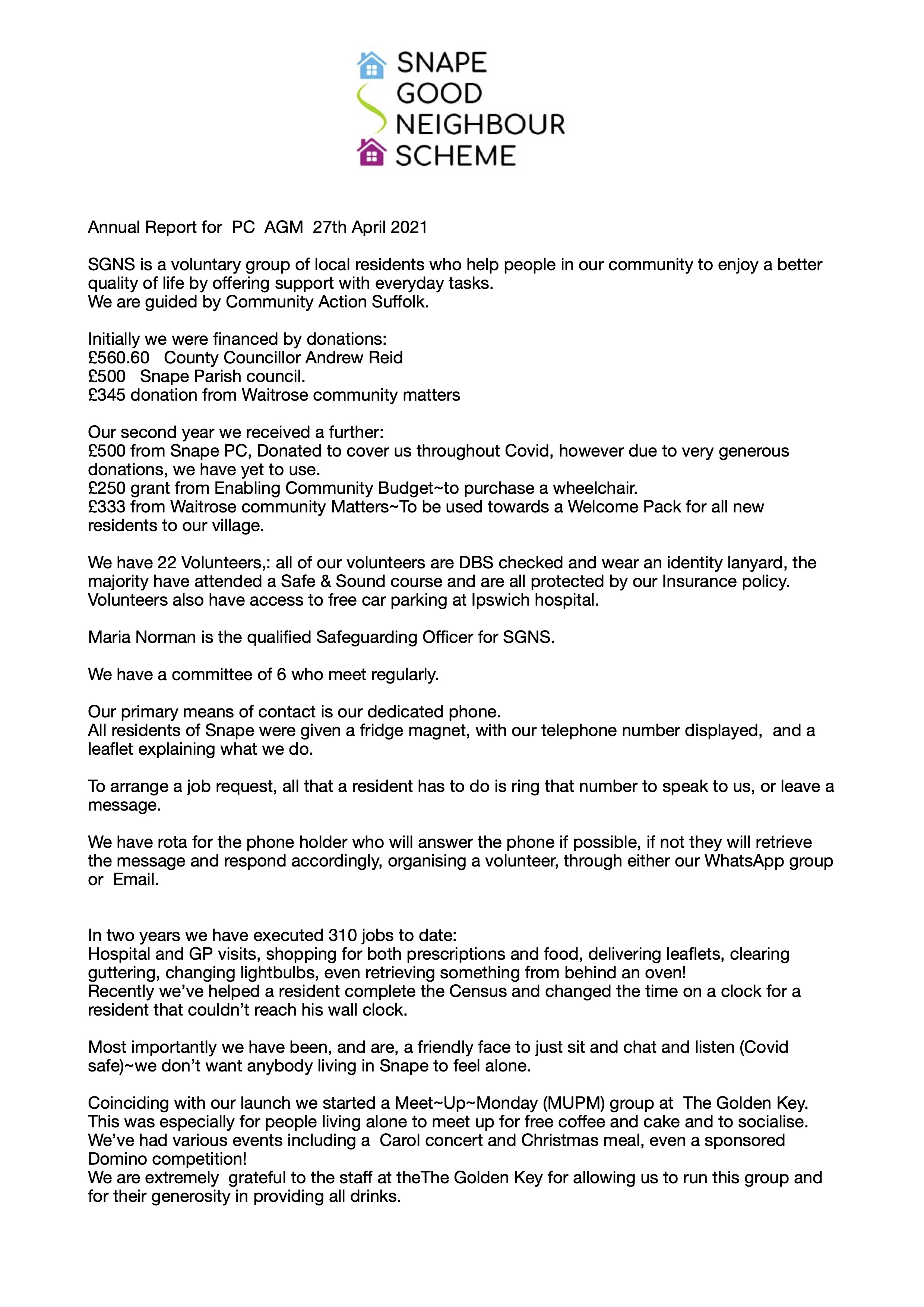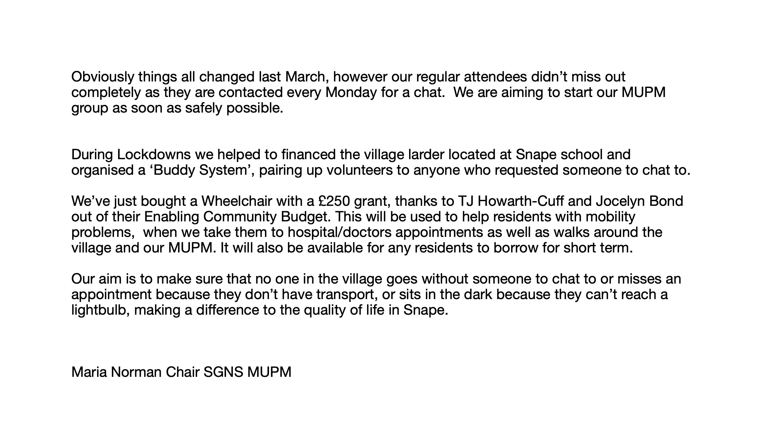 If anyone wishes to help by volunteering, then please contact our Parish Clerk, snapepc.clerk@gmail.com