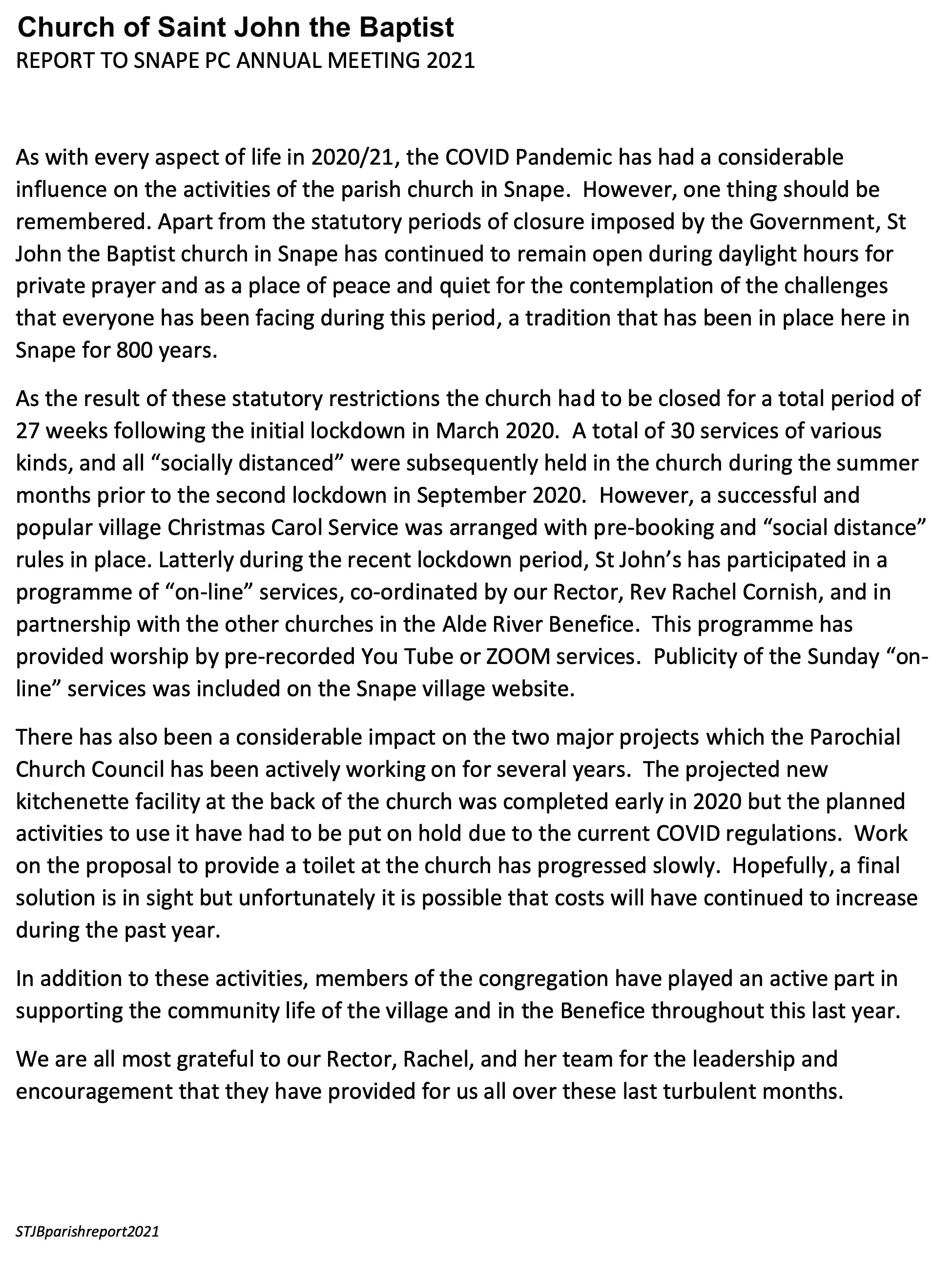 The Annual Parish Meeting, held over Zoom and incorporating verbal reports, was recorded: click here for a link to the video