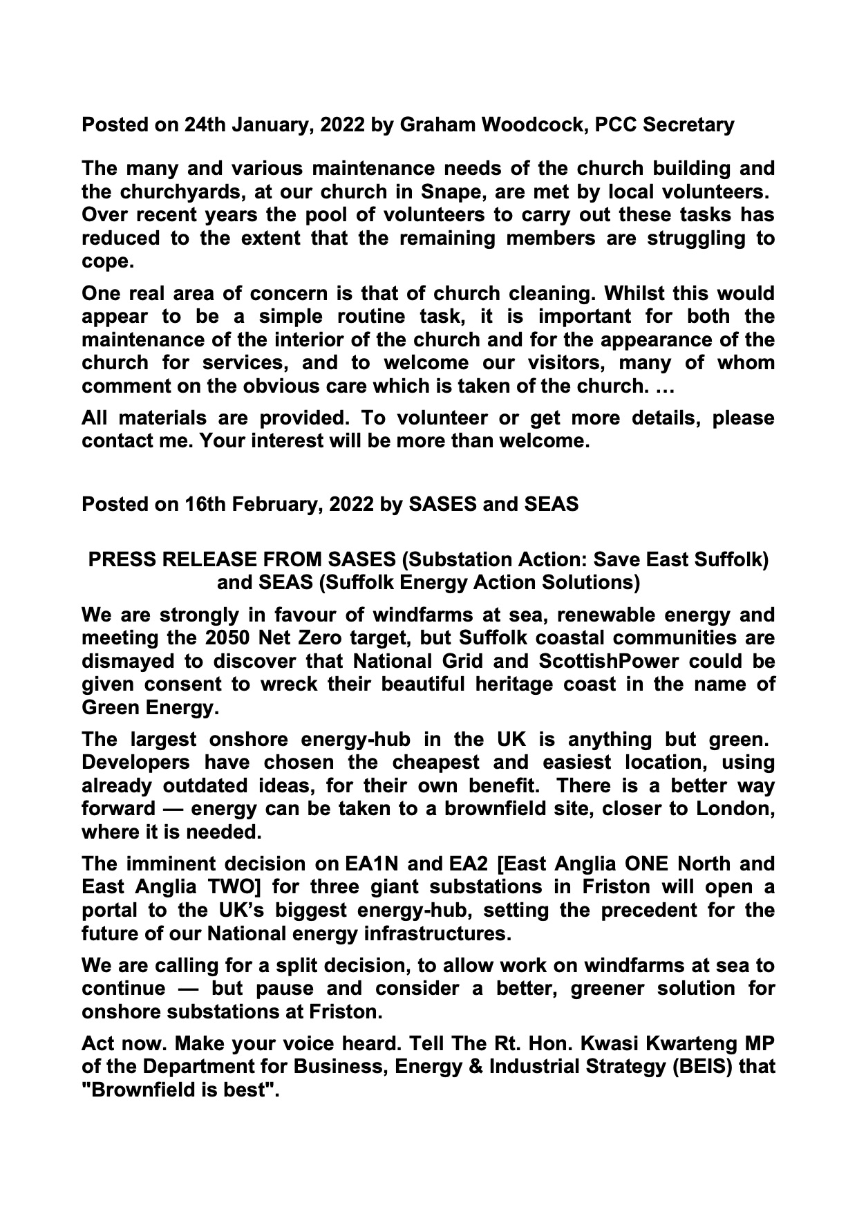 If anyone wishes to help by volunteering, then please contact our Parish Clerk, snapepc.clerk@gmail.com | |