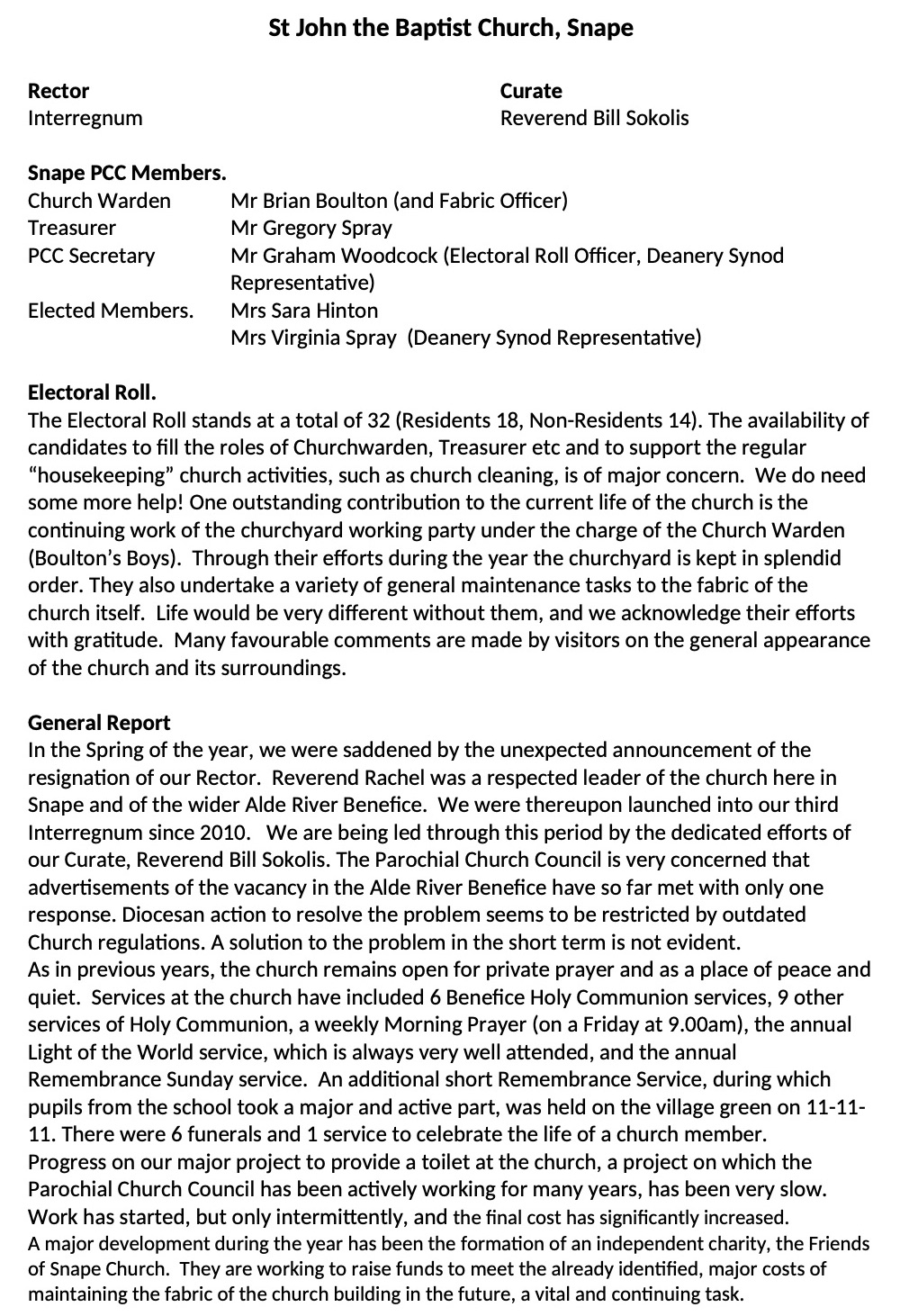 Church of St John the Baptist: PCC report | |