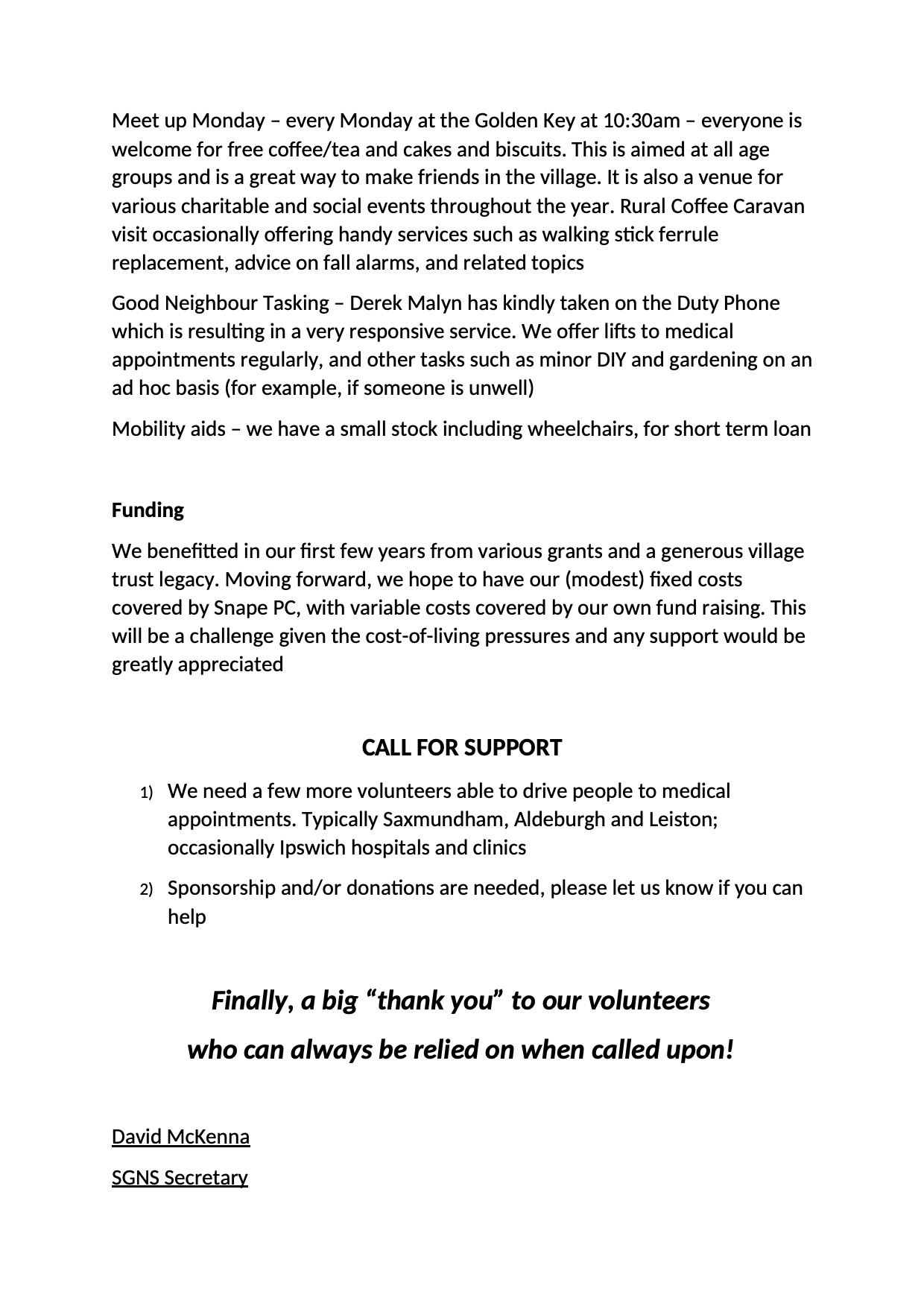 Snape Good Neighbour Scheme | |