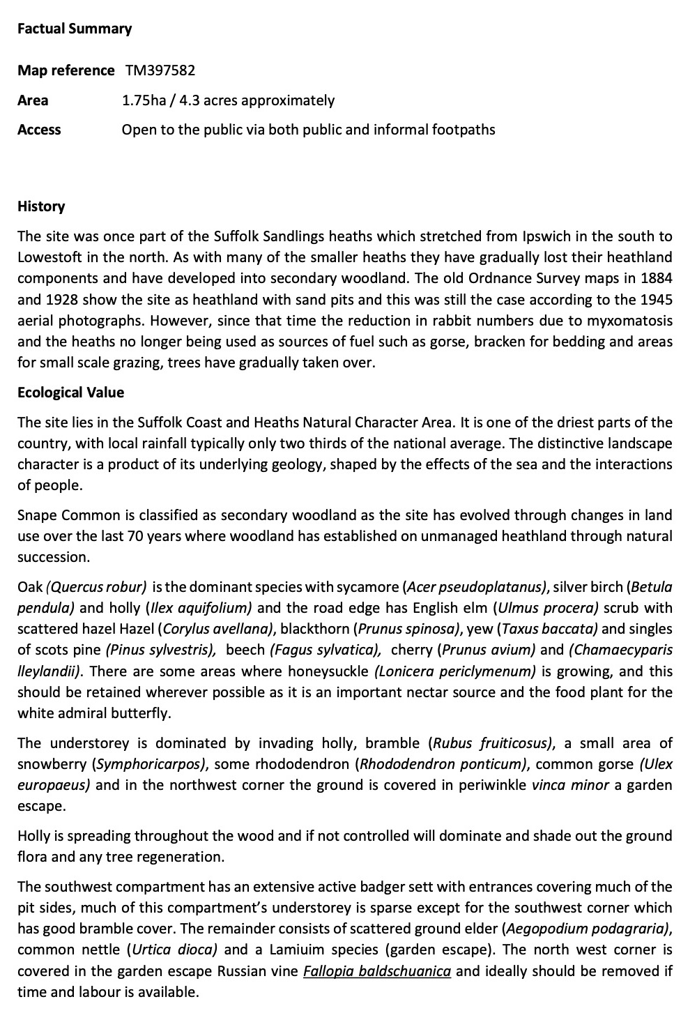 Snape-Common Management Plan