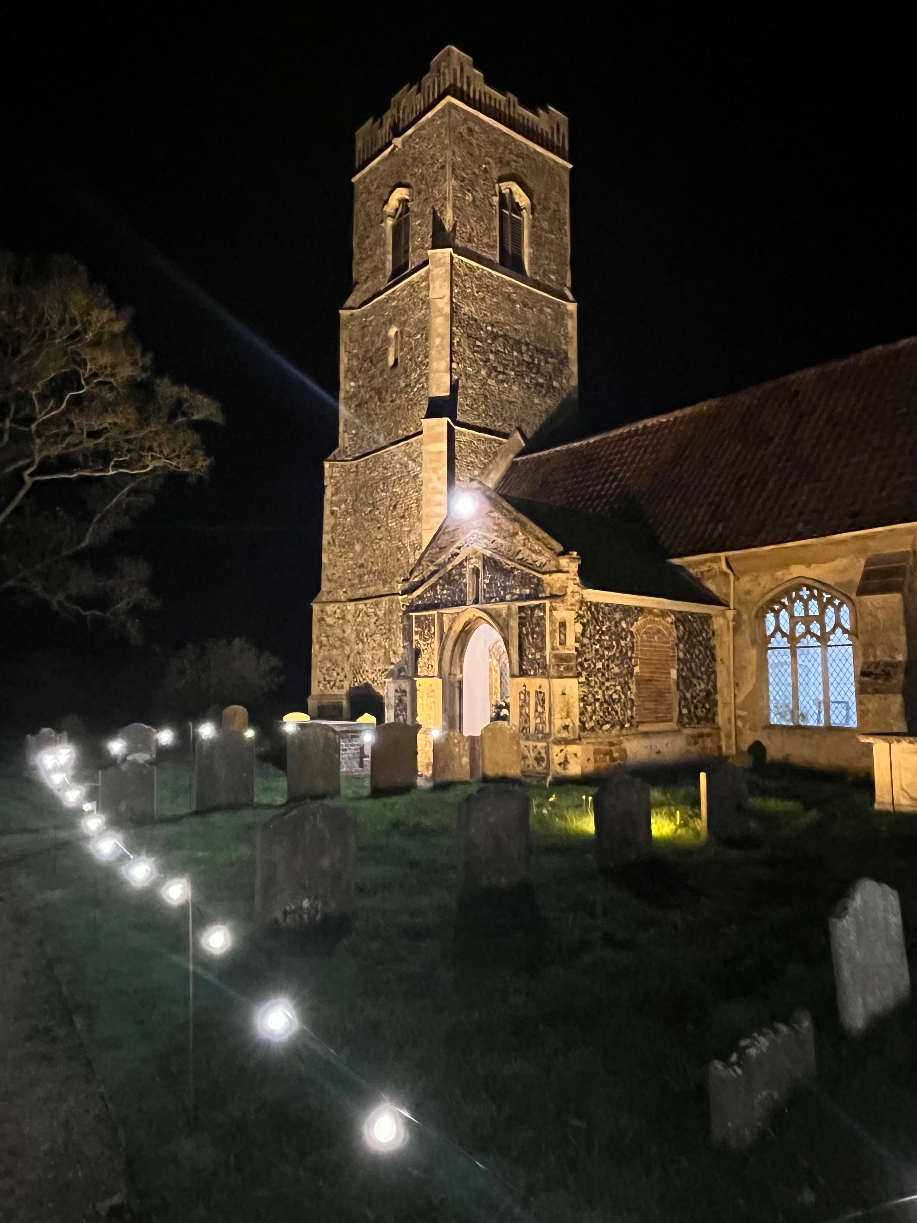 The Church floodlit for the All Souls' Service, 3rd November 2024 |