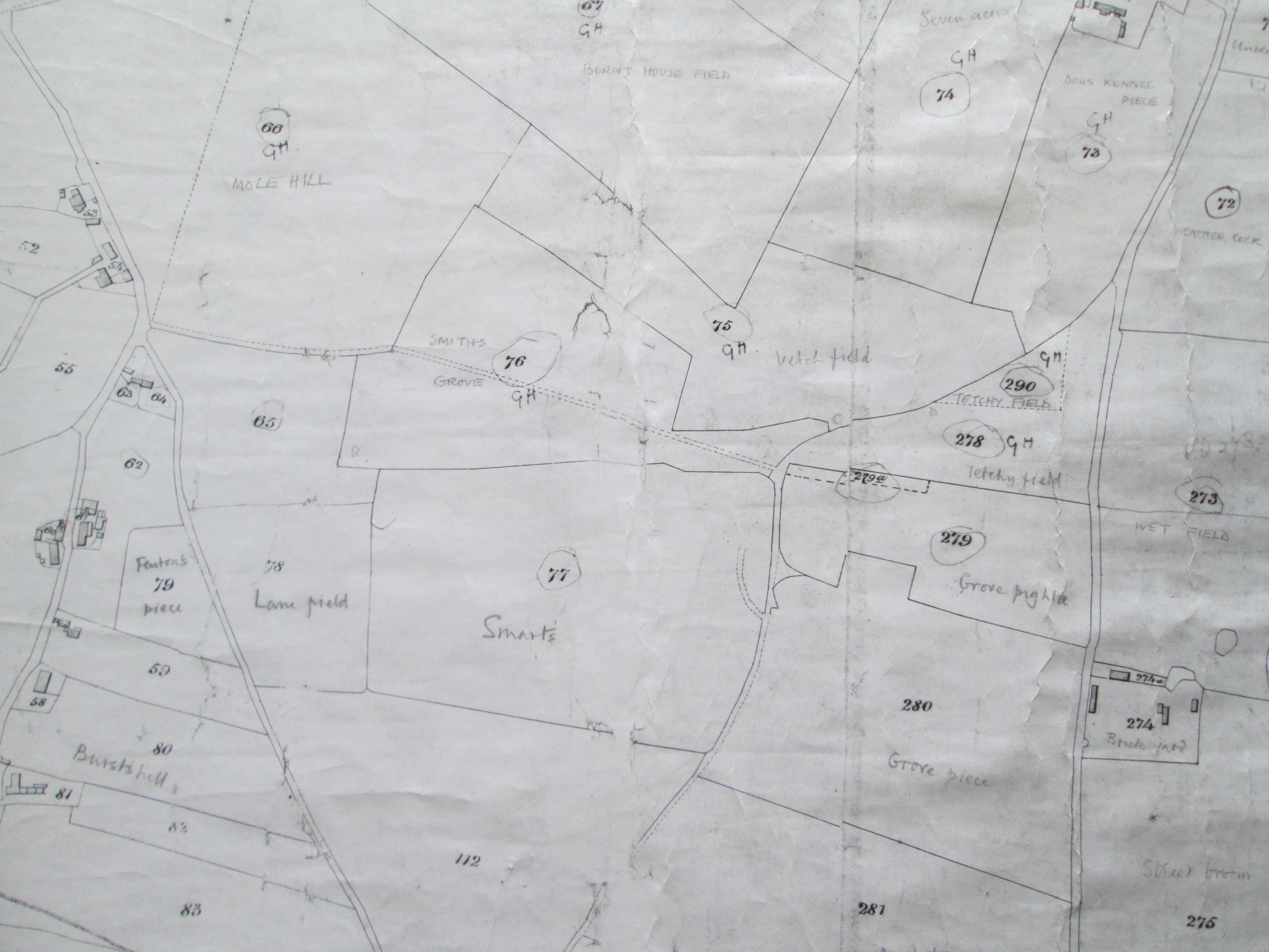 1848: showing Plot 76, AKA Smiths Grove — detail from a copy of the original tithe-map,